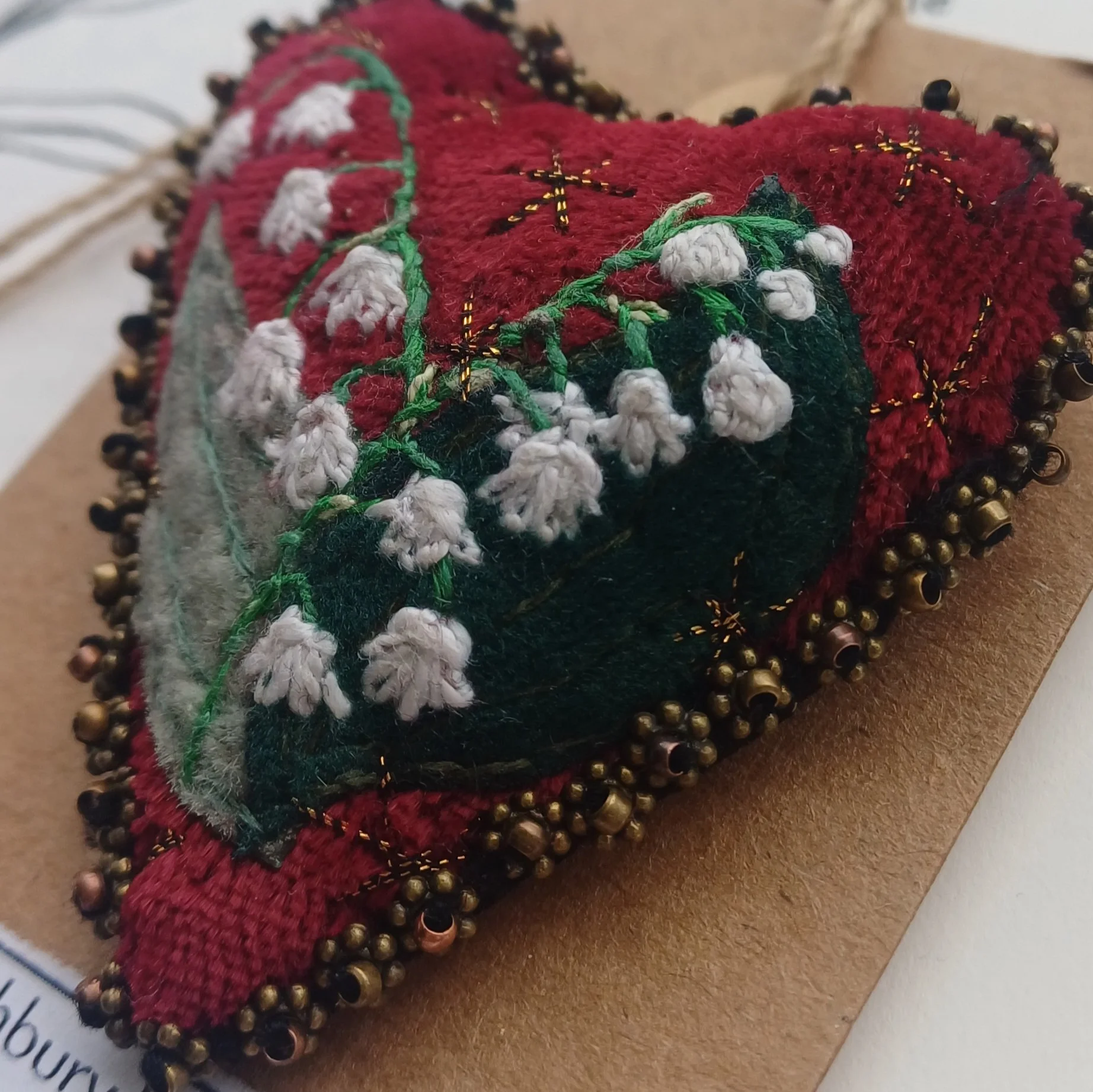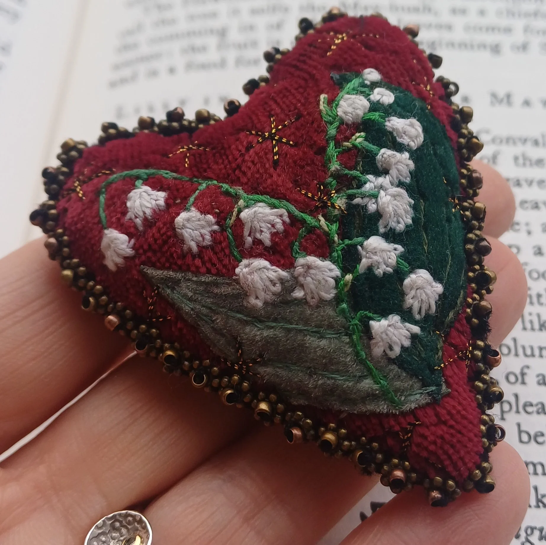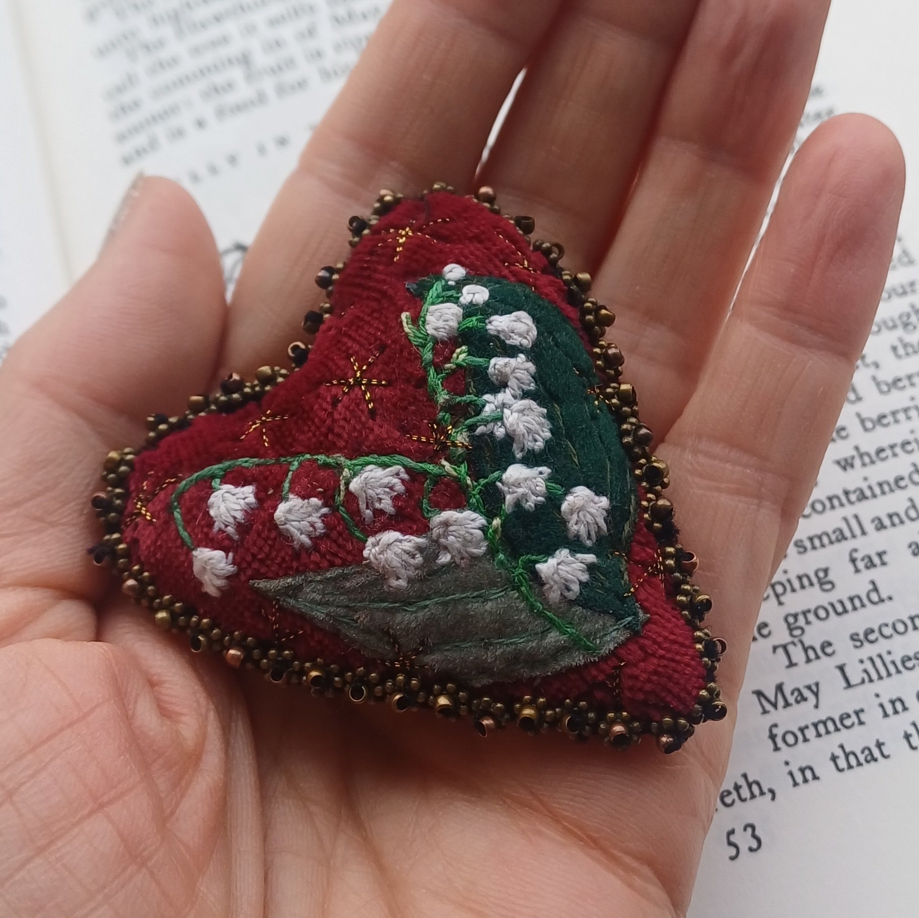 Stitched SNOWDROP Heart Brooches